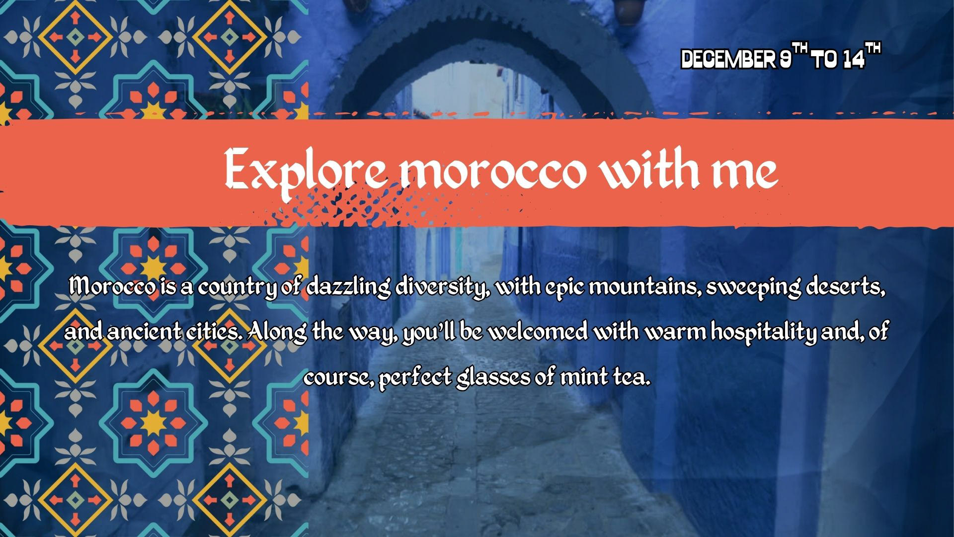 Arrive at Casablanca Airport and transfer to your accommodation. In the evening, we’ll take a relaxed walk along the Corniche, enjoying views of the Atlantic, surfers, and the lively local atmosphere.